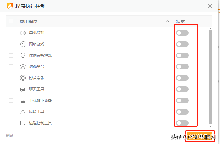 第三步: 如果你的小侄子很幸运的避开了前面两步,那么恭喜他,终于来到了第三关,程序执行控制,在这里你可以关掉这些游戏程序的类型,也可以添加程序。