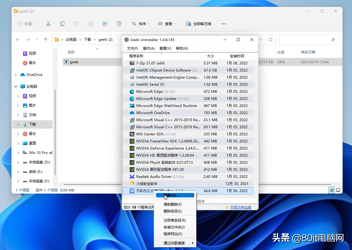 这一套组合拳打下来,拿捏熊孩子还不是手到擒来? 总之呢,火绒带给了用户一个更好的使用环境,这对于注重系统安全以及电脑中有隐私和宝贵资料的用户来说,是个不错的安防软件。想要一个默默无闻又靠谱的安全软件,火绒值得你一试。 第二款:Geek 一款体量小巧,但能力非常强劲的卸载工具,哪怕你是软件安装小白也不用担心,软件免安装,单文件打开直接使用,带有中文语言。默认情况下,首次运行后可能是繁体中文界面,你可以在“界面语言”菜单中更改过来。