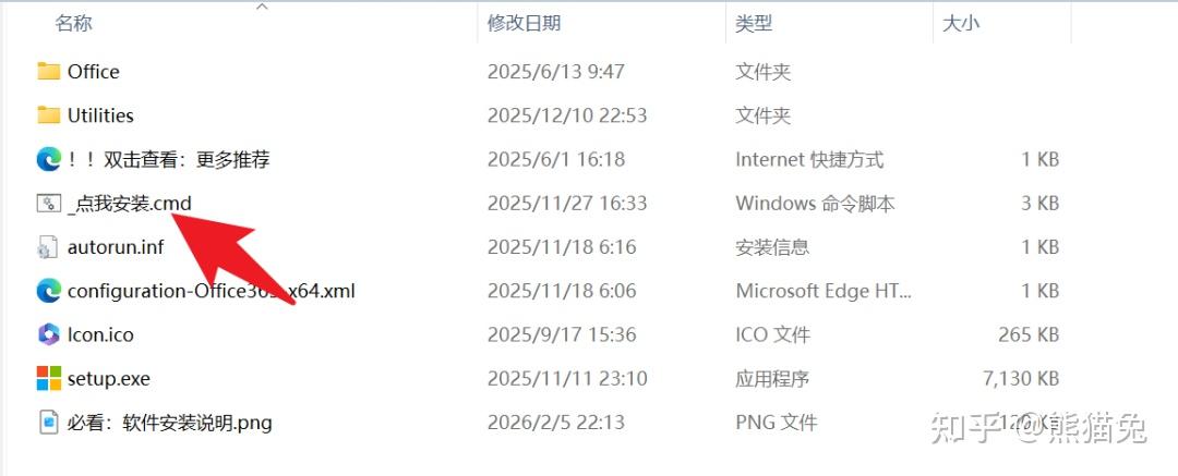 安装方式略有不同:无需运行"setup.exe",直接双击"_点我安装.cmd"即可。
